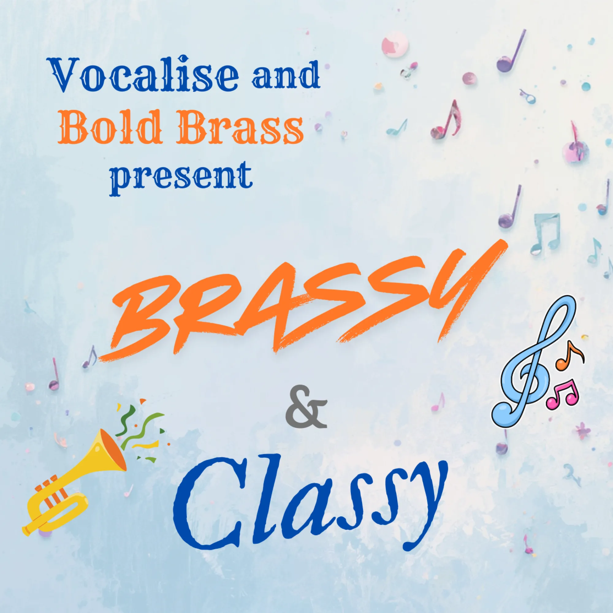 Vocalise Choir and Bold Brass come together for a vibrant, eclectic programme full of warmth, colour and musical surprises. Uplifting favourites and toe-tapping delights performed with energy, friendship and flair. Whether you love soaring harmonies, thrilling brass, or simply the pleasure of a great night out, Brassy & Classy promises an evening to lift the spirits and send you home smiling.
