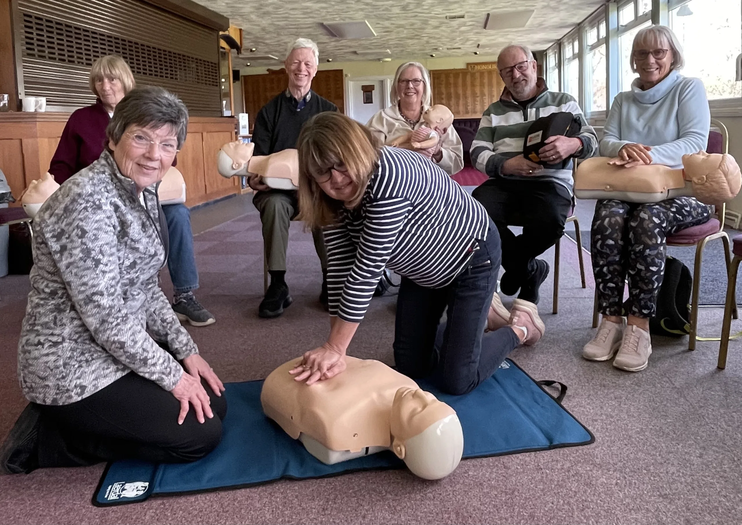 Six mannequins were brought in by Jenny Pascoe, a former resuscitation officer at the BRI, to assist a very informative session to club members on first aid and defibrillator training. Jenny’s reassuring manner has given the attendees the confidence to use the skills they learnt should they ever be needed. The outdoor bowling season has started.
